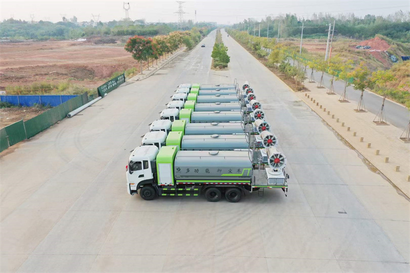 一. 產品簡述 抑塵車又稱為綠化噴灑車、多功能灑水車、園林綠化灑水車。抑 塵車適合于各種路面沖洗,樹木、綠化帶、草坪綠化,道路、廠礦企業 施工建設,高空建筑沖洗。抑塵也可以作為運水車使用,最常見的車 型有綠化噴灑車、多功能灑水車、綠化灑水車幾大類。 我公司產品標配前噴(鴨嘴)、后沖、后灑、側噴、后置式工作 平臺,平臺上配置綠化水炮(可 360°旋轉,既可以調成柱狀,也可 以調成霧狀,更可以調成直沖狀、大雨、中雨、小雨、毛毛雨),配 備優質大功率專用灑水泵(可自吸自排,可從河里或池塘抽水到罐體), 取力器,雜物過濾網,消防接口,自流球閥系統、取力器、球閥、濾網 均為國家標準產品,主管道加粗,法蘭墊、法蘭盤加厚,大通徑球閥。 整體具備性能優良安全可靠、效率高、流量大、維修方便等特點。