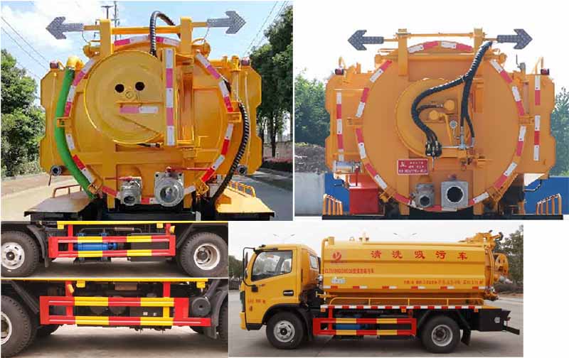 備注 | 清洗吸污車該車用于下水道排污及疏通,專用裝置:罐體、吸污泵、清洗沖刷總成;罐體外形尺寸(總長×直徑)(mm):3850×1450(前部1050mm為清水罐,后部2800mm為污水罐);污水罐總容量:3.94立方米,污水罐有效容積:3.75立方米,介質:液態污物,密度800千克/立方米;罐體兩側不規則箱體也為清水罐,尺寸為(長×寬×高(mm):3500×560×1000,清水罐總容量:3.15立方米,清水罐有效容積:3立方米,介質:水,密度1000千克/立方米,清水罐和污水罐為獨立罐體,清洗功能時用清水罐,吸污功能時用污水罐,污水罐和清水罐不可同時滿載,兩罐不能同時滿載使用;ABS型號/廠家:ABS型號:ABS/ASR-24V-4S/4M,廠家:襄陽東風隆誠機械有限責任公司.選裝限速裝置時,限速80km/h。側/后防護材料Q235碳鋼,側防護采用螺栓連接,后防護采用焊接連接,后防護截面尺寸(寬×高)(mm)50×120,后部防護離地高度(mm):400.隨底盤選裝駕駛室,選裝左右油箱安裝位置..選裝車輛側面樣式.選裝后部卷盤樣式,選裝吸污口樣式.僅采用底盤3390mm軸距改裝,該車具有舉升功能. | ||
