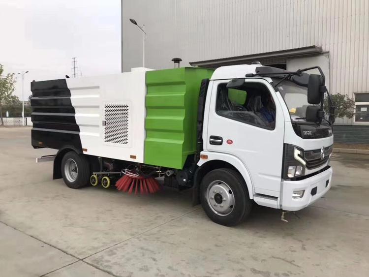該洗掃車采用東風大多利卡二類底盤改裝,加裝副發動機、風機、清水箱、垃圾箱、左右立掃、掃盤降塵系統、左右高壓側噴高、吸盤內置高壓主噴桿、氣動系統、液壓系統、專用裝置電控系統和副車架等改裝而成。