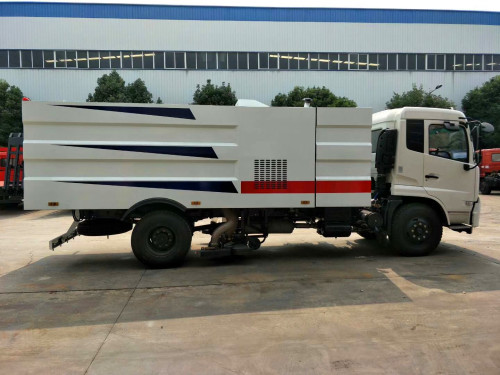 東風天錦吸塵車 上裝配置:2立方水箱、8立方不銹鋼垃圾箱,中置吸盤、康明斯副發動機、施耐德控制開關、海普瑞思電磁閥組、無極變速自動離合器、免維護離心式風機、不銹鋼垃圾箱、高精度垃圾箱過濾系統(最高可達0.3微米)、進口脈沖閥、PLC一鍵智能控制系統、尾部LED箭頭燈、手動泵應急系統、車尾霧狀噴水潤濕功能。可選裝前置雪鏟、掃雪滾。