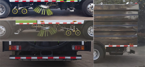 該車裝備有垃圾箱、水箱、洗掃刷等專用裝置,用于清掃、
