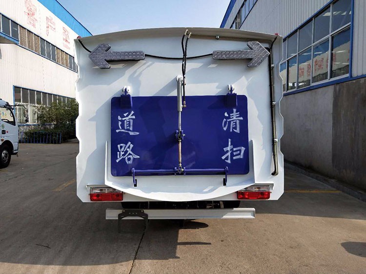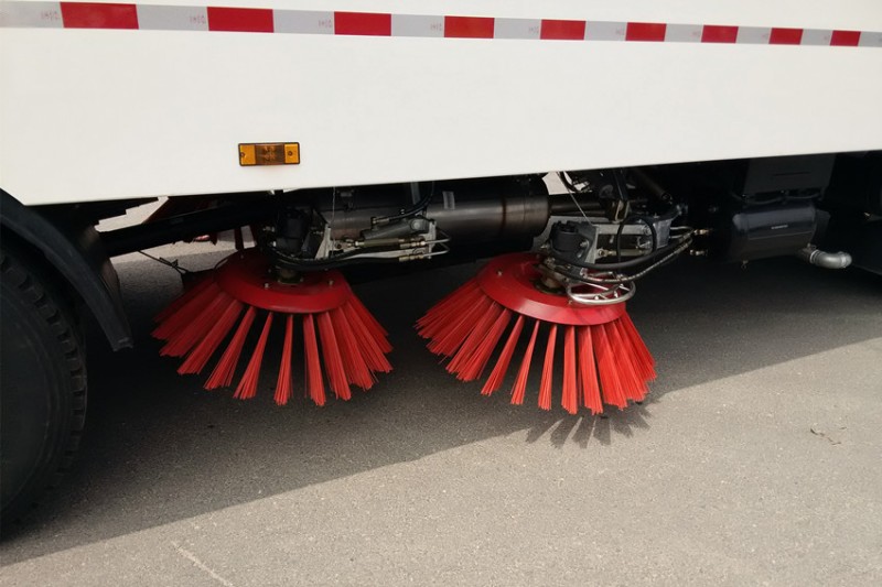 帶4個掃盤、康明斯140馬力副發動機、三洋馬達、法國施耐德控制開關、海普瑞斯電磁閥組、無級變速自動離合器、免維護離心式自動風機、不銹鋼垃圾箱、尾部LED箭頭指示燈、手動泵應急系統、垃圾舉升自卸功能。