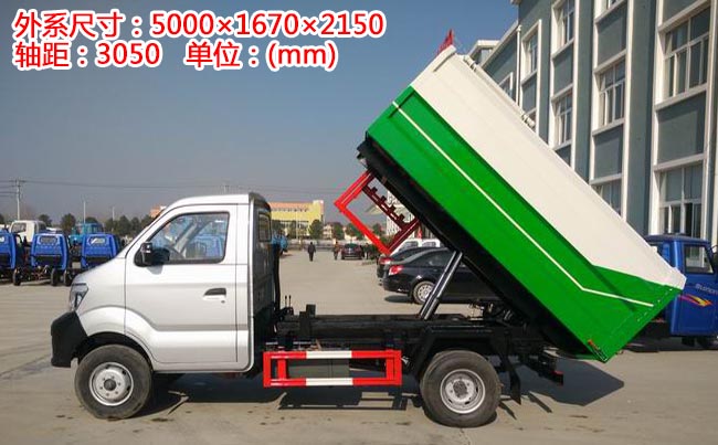 箱體容積3~4立方米,板材厚度邊3底4,箱體結(jié)構(gòu)為墻板形式,國產(chǎn)多路閥,油泵、取力器、油缸,駕駛室外部操作、箱體底部雙缸液壓舉升卸料,后門機(jī)械鎖緊、手動(dòng)開啟。