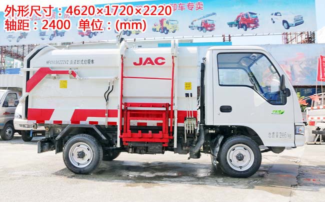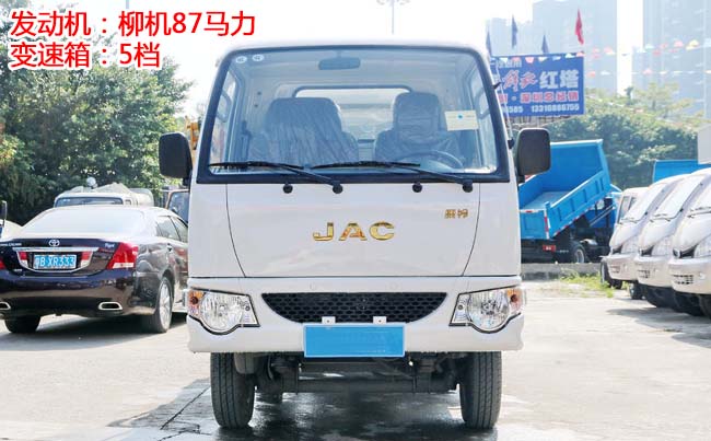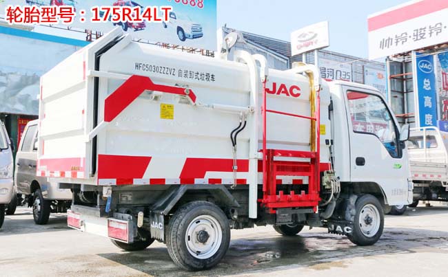江淮康鈴X1掛桶式垃圾車,柳汽87馬力,5檔變速箱,1.4T后橋,2400軸距,175R14LT(后單胎),帶暖風、空調、可調方向盤、電預熱、電熄火、不翻轉、金屬漆。