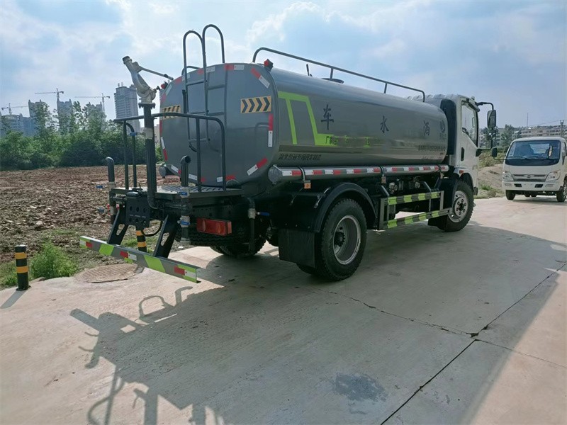 該車主要用于城鄉(xiāng)園林綠化,路面噴灑,除塵和降溫;主要裝置為水罐及噴灑裝置;隨底盤選裝駕駛室;罐體總容量:7.58立方米;罐體有效容積:7.22立方米;罐體外形尺寸(長×長軸×短軸)(mm):4200×2000×1310,4000×2000×1320;ABS型號/廠家:ABS型號及生產廠家為:3631010-C2000/東科克諾爾商用車制動系統(十堰)有限公司,J ABS/焦作博瑞克控制技術有限公司;側、后防護材料均為:Q235碳鋼,連接方式均為:螺栓連接,后部防護截面尺寸(mm):120×50,后部防護離地高度(mm):450.選裝噴灑裝置樣式,選裝后部箭頭燈,選裝后部弧形噴灑裝置,選裝水炮支架位置,選裝后部樣式,選裝自動球閥安裝位置,選裝自動炮裝置樣式,前伸500mm,整車長度為7700(mm).選裝罐體頂部高位花灑裝置及方形罐口,選裝工具箱裝置.后部作業(yè)燈僅在作業(yè)時開啟,車輛行駛過程中不可開啟.