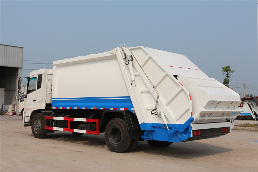 新款平面弧形廂體,廂體材料為武鋼優質碳鋼,外箱尺寸:8840×2550×3200mm,有效壓縮容積10-12立方,PLC一鍵操作控制,手電一體操作模式,兩側雙電控,帶駕駛室內操作,底板支撐加強,雙向壓縮,開放式易清潔污水箱。壓縮式垃圾車采用機電液一體化技術,借助機、電、液聯合自動控制系統、電腦控制、手動操作系統,通過填裝器和推鏟等專用裝置,實現垃圾倒入、壓碎或壓扁、強力裝填,把垃圾擠入車廂并壓實和推卸,污水全部進入污水收集箱,解決了垃圾運輸過程中的二次污染的問題。壓縮式垃圾車具有自動反復壓縮以及蠕動壓縮功能,壓縮比高、密封性好、裝載量大﹑操作方便、環保性好﹑整車利用功率高等優點。