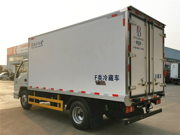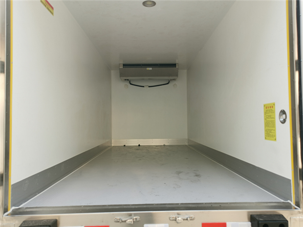 江鈴順達窄體4米2冷藏車廂體配置為:采用斷橋隔熱工藝,整體框架結構制作,廂體內、外壁材料為玻璃鋼板,采用高密度保溫層,廂板內帶有骨架,廂體厚度80mm,門框,門飾件、包角全部使用不銹鋼材質。最新款鋁合金包邊型材,廂體內采用LED照明燈及廂體示寬燈;門框密封條為橡膠材質,后門梁帶加厚防撞塊,加厚型不銹鋼鉸鏈及鎖件。車體副梁采用510L高強度鋼制作,底板為鋁花紋板,車廂后門帶一個上車扶手,其余標配;