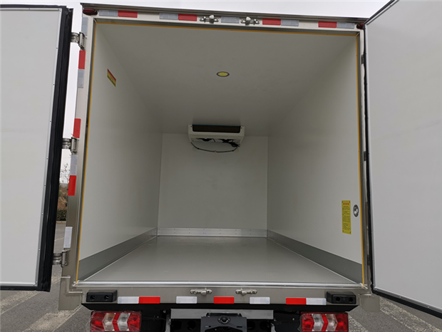 國六江鈴凱運4米2冷藏車廂體配置為:采用斷橋隔熱工藝,整體框架結(jié)構(gòu)制作,廂體內(nèi)、外壁材料為玻璃鋼板,采用高密度保溫層,廂板內(nèi)帶有骨架,廂體厚度80mm,門框,門飾件、包角全部使用不銹鋼材質(zhì)。最新款鋁合金包邊型材,廂體內(nèi)采用LED照明燈及廂體示寬燈;門框密封條為橡膠材質(zhì),后門梁帶加厚防撞塊,加厚型不銹鋼鉸鏈及鎖件。車體副梁采用510L高強度鋼制作,底板為鋁花紋板,車廂后門帶一個上車扶手,其余標(biāo)配;