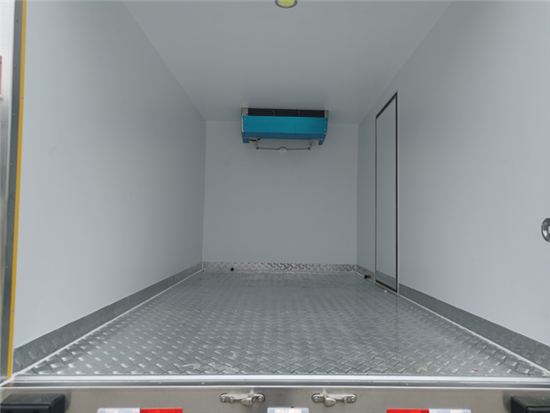 江鈴順達(dá)4米2冷藏車廂體配置為:采用斷橋隔熱工藝,整體框架結(jié)構(gòu)制作,廂體內(nèi)、外壁材料為玻璃鋼板,采用高密度保溫層,廂板內(nèi)帶有骨架,廂體厚度80mm,門框,門飾件、包角全部使用不銹鋼材質(zhì)。最新款鋁合金包邊型材,廂體內(nèi)采用LED照明燈及廂體示寬燈;門框密封條為橡膠材質(zhì),后門梁帶加厚防撞塊,加厚型不銹鋼鉸鏈及鎖件。車體副梁采用510L高強(qiáng)度鋼制作,底板為鋁花紋板,車廂后門帶一個(gè)上車扶手,其余標(biāo)配;