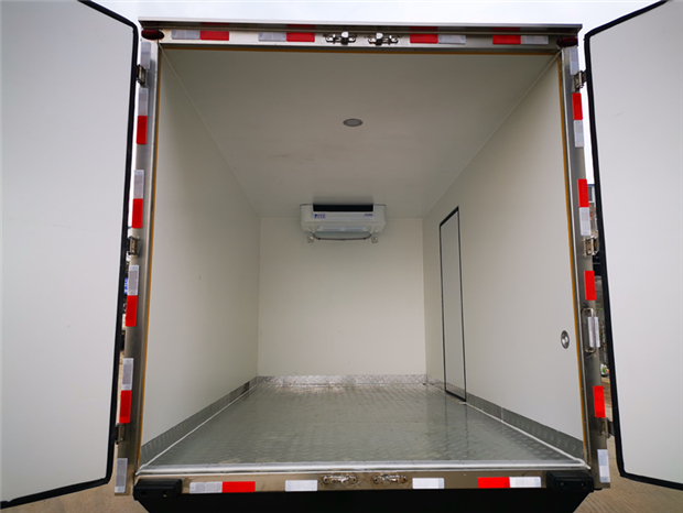 福田歐馬可4米2冷藏車廂體配置為:采用斷橋隔熱工藝,整體框架結構制作,廂體內、外壁材料為玻璃鋼板,采用高密度保溫層,廂板內帶有骨架,廂體厚度80mm,門框,門飾件、包角全部使用不銹鋼材質。最新款鋁合金包邊型材,廂體內采用LED照明燈及廂體示寬燈;門框密封條為橡膠材質,后門梁帶加厚防撞塊,加厚型不銹鋼鉸鏈及鎖件。車體副梁采用510L高強度鋼制作,底板為鋁花紋板,車廂后門帶一個上車扶手,其余標配;