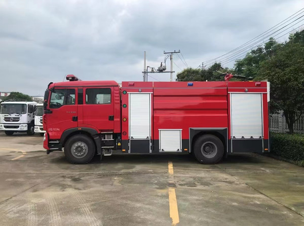 豪沃8噸水罐消防車采用重汽豪沃底盤改裝,平頭雙排駕駛室,液壓翻轉,重汽350馬力發動機,罐體容積7.9立方米;整車結構緊湊,方便靈活,動力性能好,車速高,能自由進出鄉村狹窄道路及小區,具有大型消防車的全套消防功能,上裝箱體的上裝骨架全部采用引進歐洲技術生產的鋁合金型材制造,整車的重量減少,機動性能和整車載重量提高。除了裝備消防水泵及器材以外,還設有較大容量的貯水罐及水槍、水炮等。可將水和消防人員輸送至火場獨立進行撲救火災。也可以從水源吸水直接進行撲救,或向其他消防車和滅火噴射裝置供水。在缺水地區也可作供水、輸水用車,主要適用于大中城鎮、鄉村狹窄街道、城市小區、繁忙的批發市場等場所的一般物質滅火,閑暇時可用于園林噴灌、道路清灑。