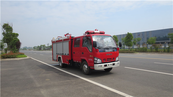 東風凱普特5噸水罐消防車,整車型號:JDF5110GXFSG50/E6型水罐消防車,采用東風EQ1125SJ8CDC底盤改裝而成。整車由消防員乘員室和車身兩大部分組成,乘員室為雙排,可乘坐3+3人,該車為外露罐結構,車身前部為器材箱,中部為水罐,后部為泵房。載液罐體為優質碳鋼,與底盤采用彈性連接,載水5000kg,裝備CB10/30型低壓消防泵,額定流量30L/S,車頂安裝PS30W型車用消防炮。該車輛結構緊湊,配置完備,機動性強,能夠及時應對企業,社區或重點消防單位的火情,可以第一時間形成小型戰斗力進行初期火災的撲救和人員疏散撤離。可廣泛應用于消防救援站,政府專職消防隊,企業專職消防隊等。