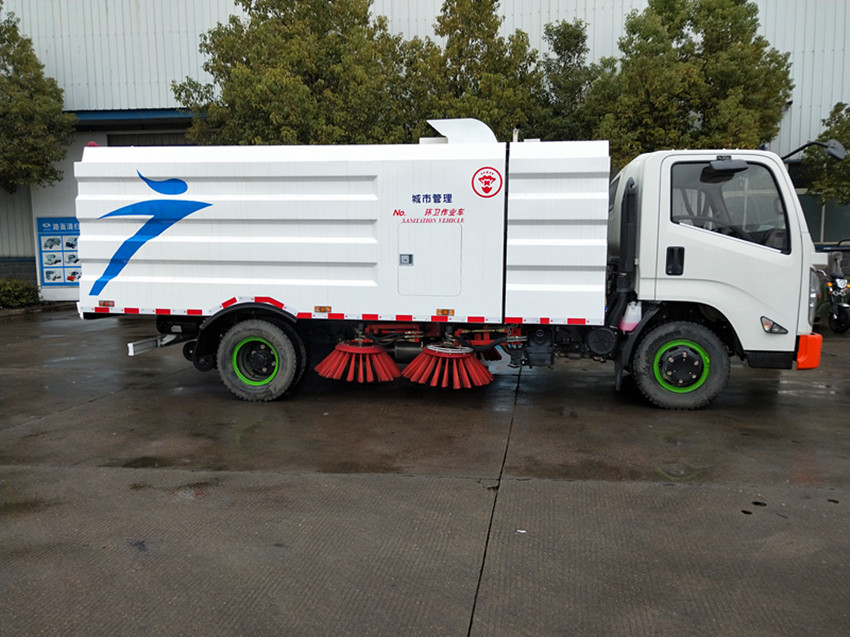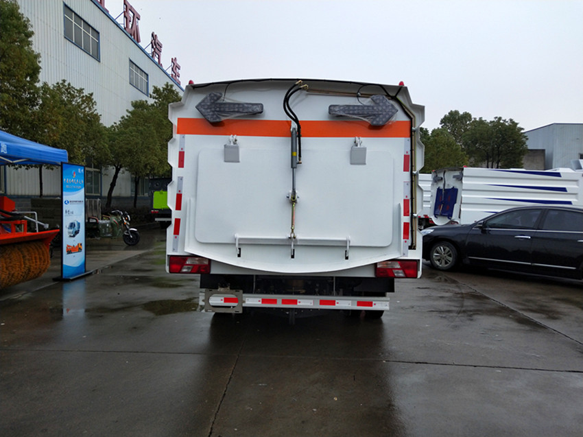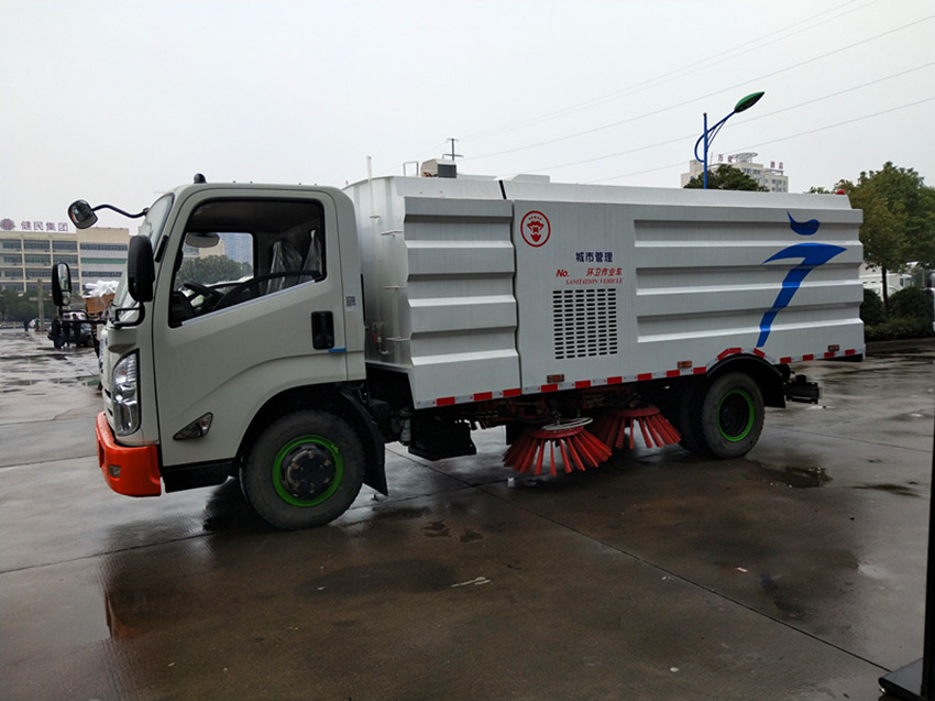 1、掃路車采用吸掃結合的方式收集垃圾,濕式除塵、電液控制,液壓傾翻卸料的作業方式對路面進行清掃作業。