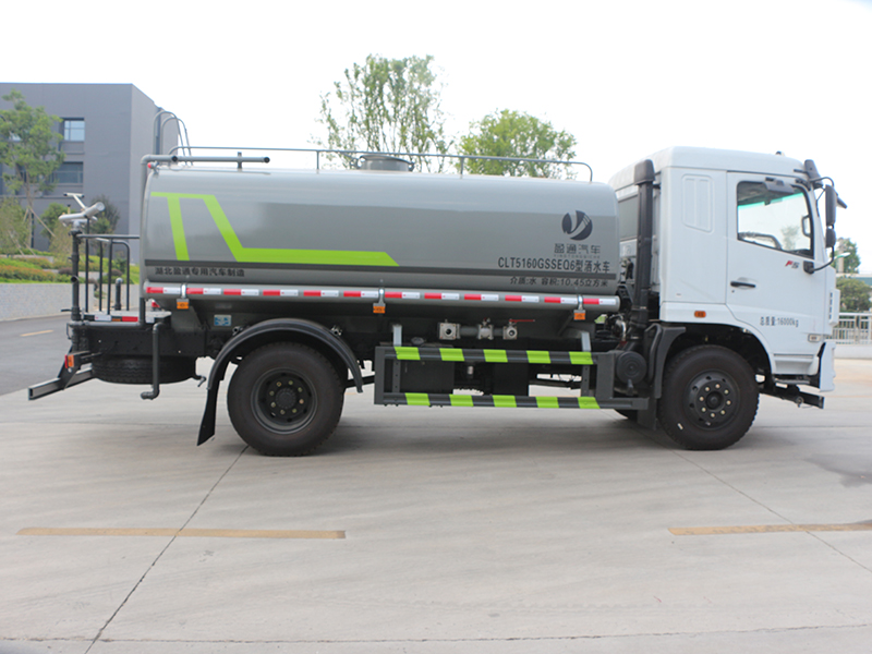 標(biāo)準(zhǔn)配置灑水車主要裝備有:前沖(沖洗公路路面)、后灑(公路路面養(yǎng)護(hù))、側(cè)噴、高位側(cè)花灑(路邊綠化帶優(yōu)化);后工作平臺(tái)高壓水炮,可調(diào)節(jié)成柱狀,射程≥28m;也可調(diào)節(jié)成霧狀,射程≥30米,水泵自吸高度:≤7m,灑水寬度:≥15m。側(cè)防護(hù)網(wǎng),自流閥,消防接頭。灑水車水泵為常壓水泵,功能可以抽水、排水。另外根據(jù)用戶要求,可加消防泵、噴霧機(jī)、農(nóng)藥卷盤(pán)、農(nóng)藥柱塞泵。罐內(nèi)可以做防腐防銹、電磁閥氣動(dòng)閥自動(dòng)放水等****,以滿足不同用戶需求。