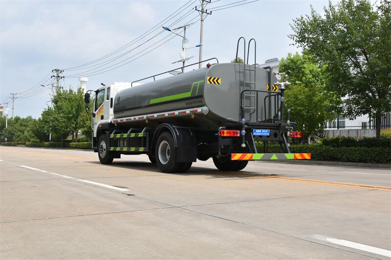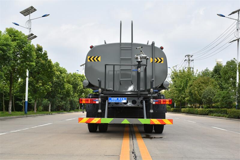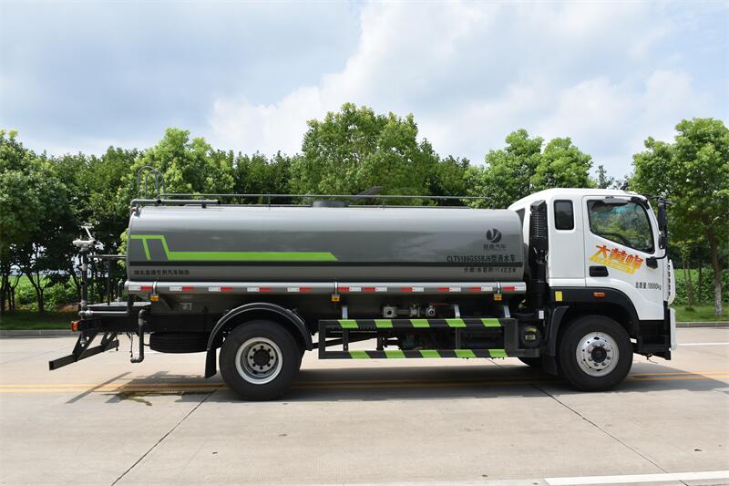 該車主要用于城鄉(xiāng)園林綠化,路面噴灑,除塵和降溫;主要裝置為罐體及噴灑裝置;罐體總?cè)萘?11.4立方米;罐體有效容積:10.86立方米;罐體外形尺寸(長×長軸×短軸)(mm):5200×2300×1400;4200×2300×1450;側(cè)、后防護(hù)材料均為:Q235碳鋼,連接方式均為:螺栓連接,后部防護(hù)截面尺寸(mm):120×50,后部防護(hù)離地高度(mm):470;ABS系統(tǒng)型號(hào):ABS-VI.E;生產(chǎn)企業(yè):廣州瑞立科密汽車電子股份有限公司.ABS系統(tǒng)型號(hào):ABS-E;生產(chǎn)企業(yè):威伯科汽車控制系統(tǒng)(中國)有限公司,ABS系統(tǒng)型號(hào):3550D-1010;生產(chǎn)企業(yè):東科克諾爾商用車制動(dòng)系統(tǒng)(十堰)有限公司.采用3950mm,4500mm軸距。選裝尿素罐位置,選裝電瓶位置。選裝后部箭頭燈,選裝后部弧形噴灑裝置,選裝水炮支架位置,選裝自動(dòng)球閥安裝位置,選裝前部水炮樣式,前伸為500mm,對(duì)應(yīng)整車長度為8950mm,7950mm。