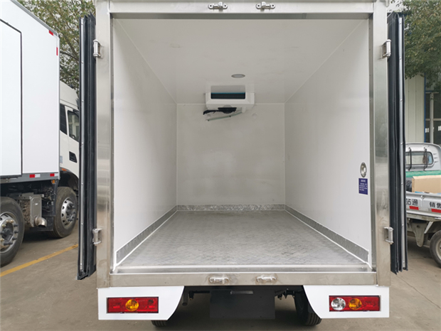 長安跨越王3米冷藏車車廂配置:廂體采用內外優質玻璃鋼板夾保溫層制成,廂體厚度80mm,鋁合金型材包邊,鎖件為不銹鋼,地板為鋁花紋板,不銹鋼門框,鎖件,新型鋁合金型材包邊,不銹鋼包角。