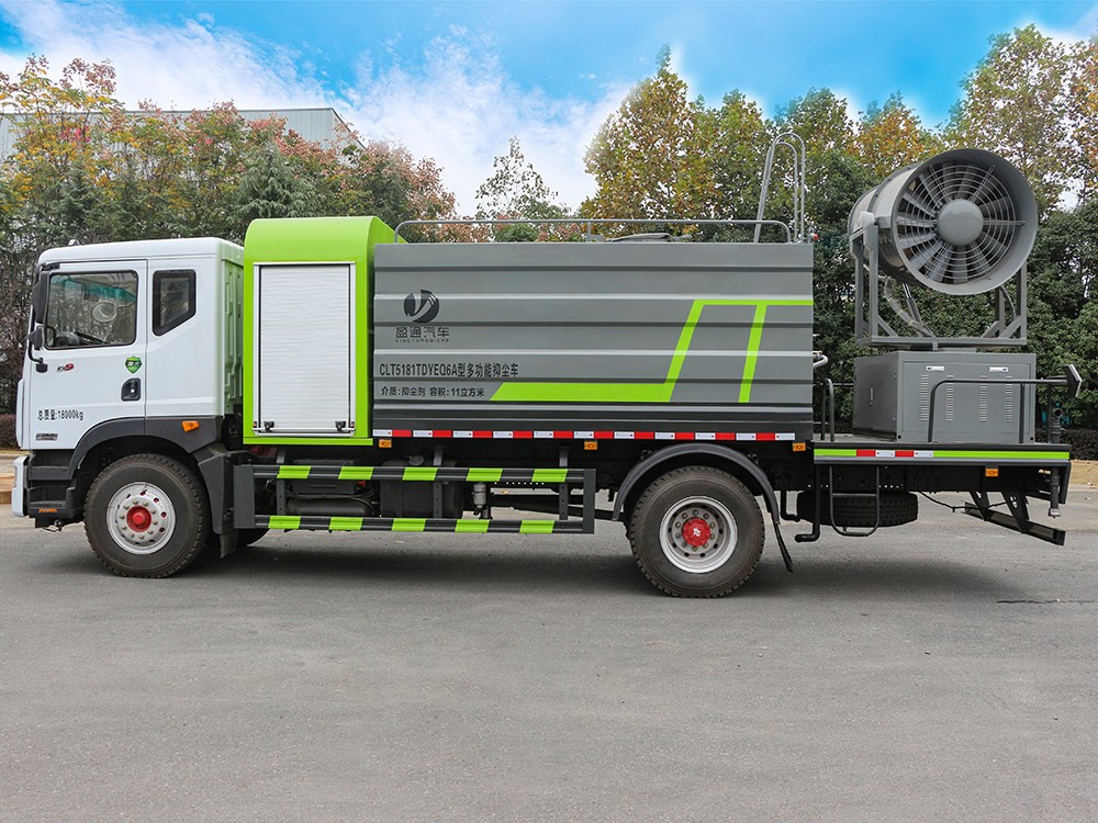 東風D9 -12方大型抑塵車產品主要技術參數(shù) 序號 名稱 型號、規(guī)格 1 整車型號 CLT5181TDYEQ6A 型多功能抑塵車 2 發(fā)動機型號 YCS04200-68 3 發(fā)動機馬力/功率 玉柴 200 馬力/147KW 4 發(fā)動機排量 4156ML 5 變速箱 法士特 8 檔(帶高低檔) 6 輪胎規(guī)格 10.00 鋼絲胎 7 軸距 4500 8 總質量 18000KG 9 整備質量 8900KG 10 額定載質量 8905KG 11 整車尺寸(長×寬×高) 8.68*2.5*3.8 12 罐體容積 12 方 13 燃料種類 柴油 14 排放標準 國六 15 水泵型號 60/90 16 罐體材質 Q235 碳鋼
