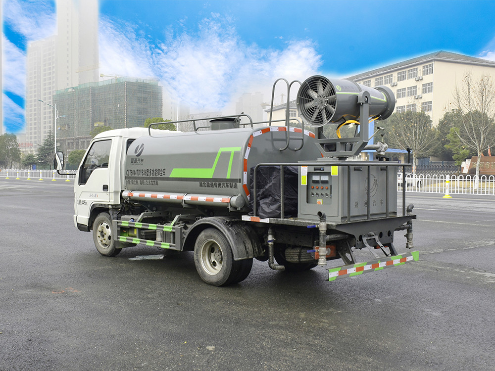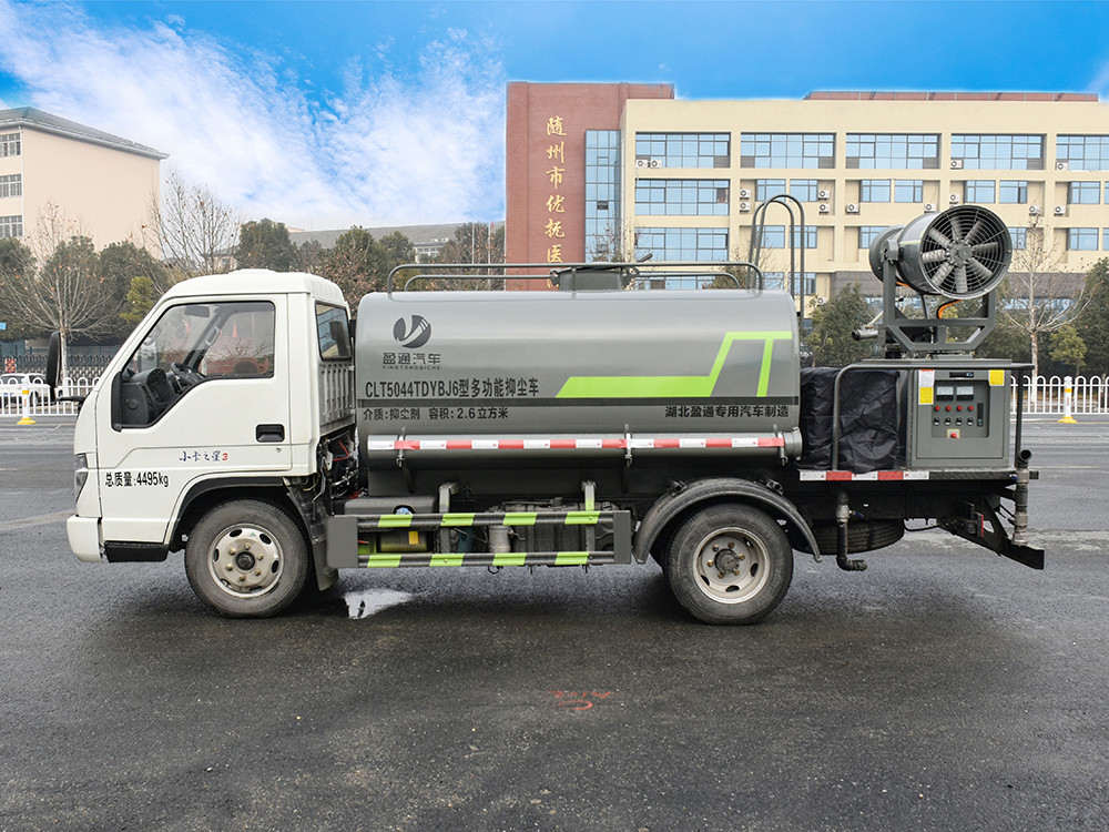 福田小卡 3 4.1 方藍牌抑塵車產品配置 1.底盤配置: 發動機全柴 115 馬力,軸距 2850,萬里揚 5 檔箱,6.50 鋼絲胎、 動力轉向、離合助力、TBOX、油剎2.上裝配置: 1、罐體約為 4.1 方,可加裝 30 型霧炮 2、邊燈帶電,罐體尾部上方標配 2 個紅色示寬燈, 3、標配前噴為鴨嘴直沖,標配后沖,用戶可根據自己的需求,來調 整對沖位置。 4、花紋防滑平臺,炮筒后蓋為定制型螺栓卡扣, 5、前噴、后沖、后灑、側噴,綠化高炮開關球閥均采用 50 大通經 不銹鋼球閥, 6、新式軸承式水炮,更加耐用, 7、40-50 型水泵, 8、防腐法蘭墊片, 9、鋁制后灑,不易炸開 10、罐體自動焊(美國林肯焊機及電源),拼板自動焊接,封頭環 縫焊接,無氣孔,焊縫美觀。 11、側護網、后保險杠、均為螺栓連接,方便拆卸,維修方便。 12、塑料擋泥板,替代鐵擋泥板,更加輕便,用螺栓連接,方便拆 卸。 13、前部、后部主管連接處為 6 孔圓法蘭,不易沖墊